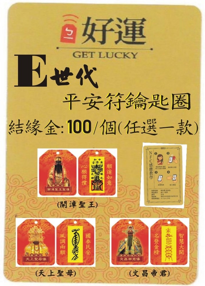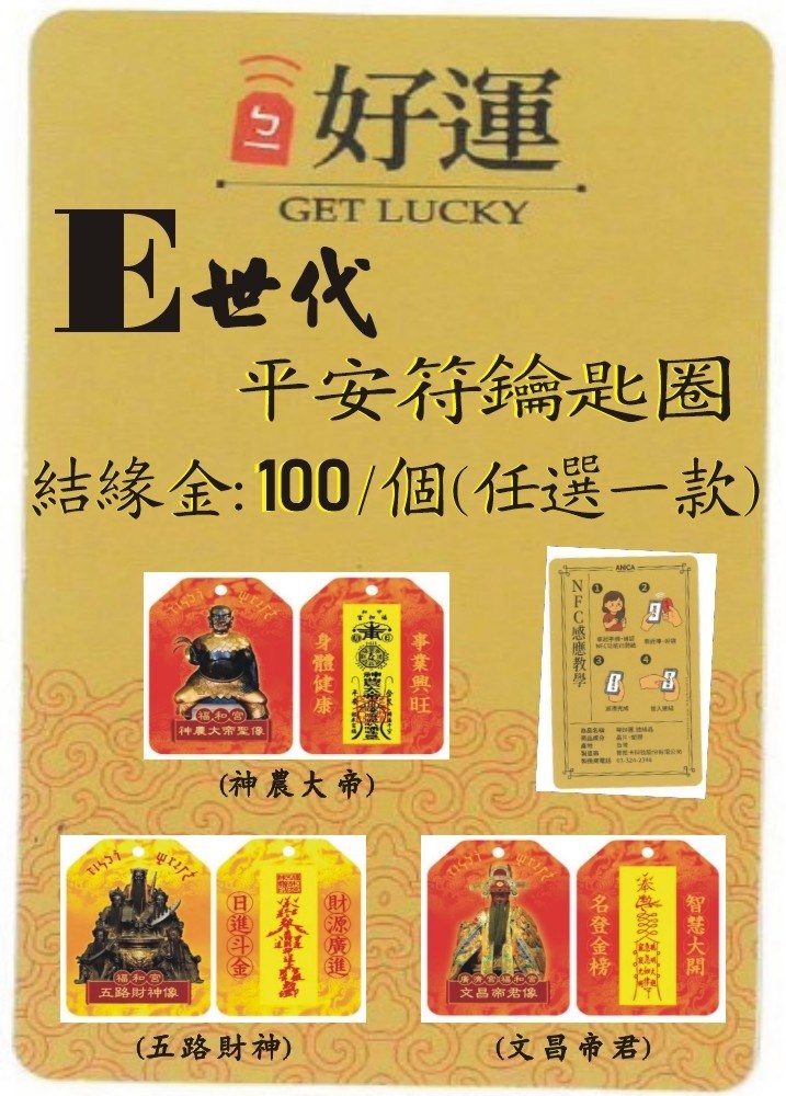 中和「廣濟宮」、「福和宮」推出不同款式的《ㄅㄧ好運帶回家》平安符鑰匙圈。